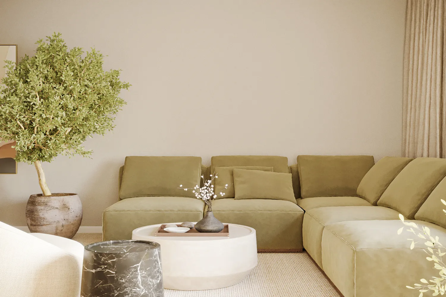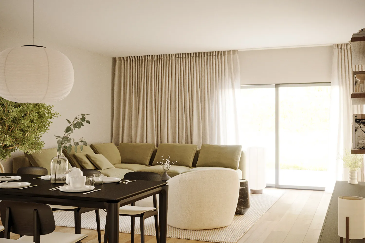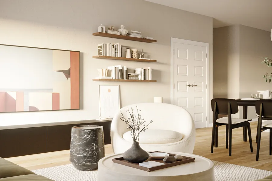 Design Labodina was entrusted with furnishing and styling a newly constructed home in Alabama for a young professional and his dog. Working remotely from Amsterdam, the studio faced the unique challenge of creating a cohesive Japandi-inspired interior within the constraints of existing finishes, a pre-installed kitchen, and fixed architectural elements.